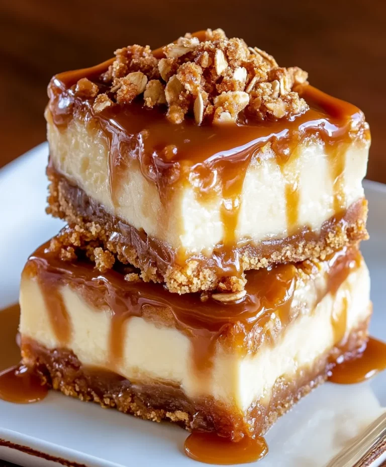 Each layer of these bars provides a delightful contrast of textures and flavors—from the buttery graham cracker crust to the creamy cheesecake and spiced apples, all topped with a crunchy streusel. The caramel sauce ties everything together, making these bars a show-stopping dessert.