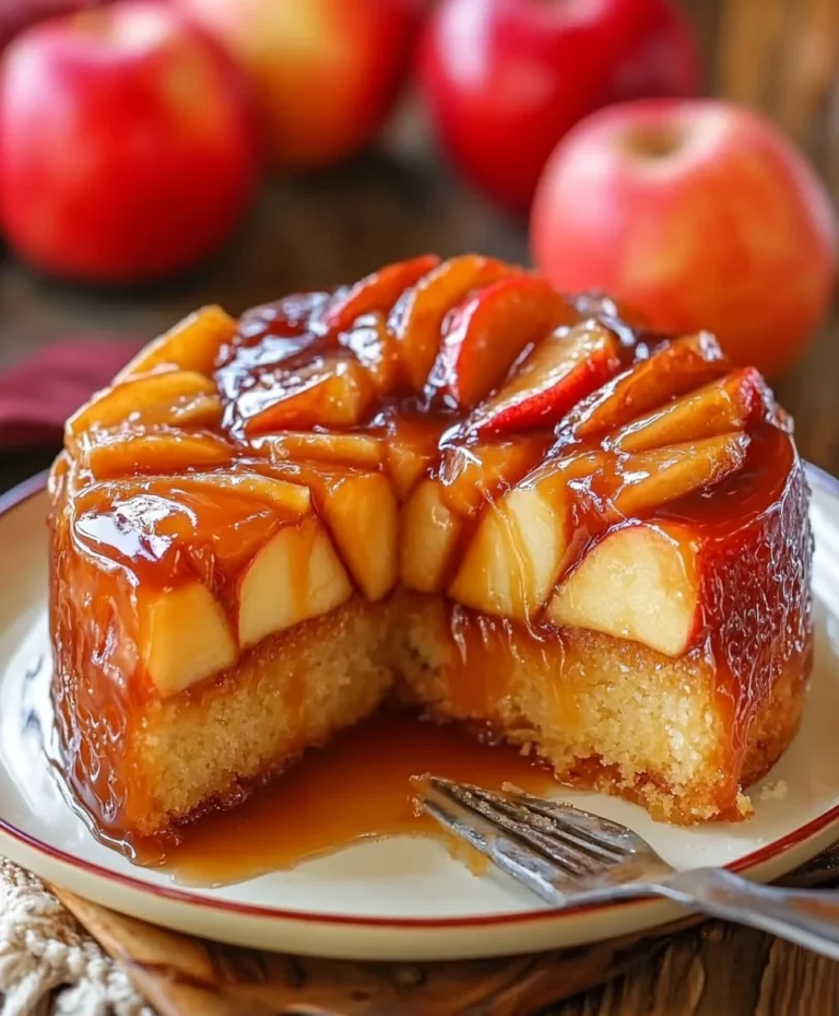 Immerse yourself in the seasonal delight of Caramel Apple Upside Down Cake, a perfect autumn treat that combines the tartness of apples with the sweet, caramelized goodness of brown sugar. This cake is as visually stunning as it is delicious, with a top layer of beautifully arranged apple slices that become tender and richly flavored as they bake.