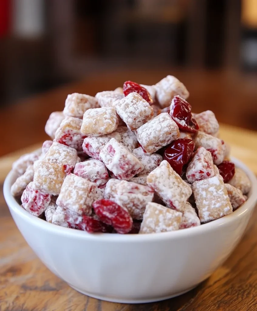 Cherry Cheesecake Puppy Chow isn’t just another snack; it’s an experience. Each piece of Chex cereal is coated with a luxurious mix of white chocolate and cherry.