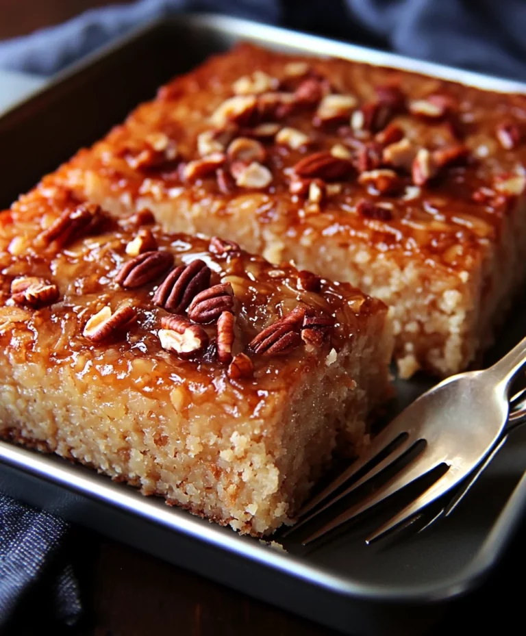 This old-fashioned Granny Cake combines the simplicity of crushed pineapple with the irresistible crunch of toasted coconut and nuts, all crowned with a sweet caramel glaze. The golden topping adds a delightful texture and flavor, making every bite a heavenly treat.